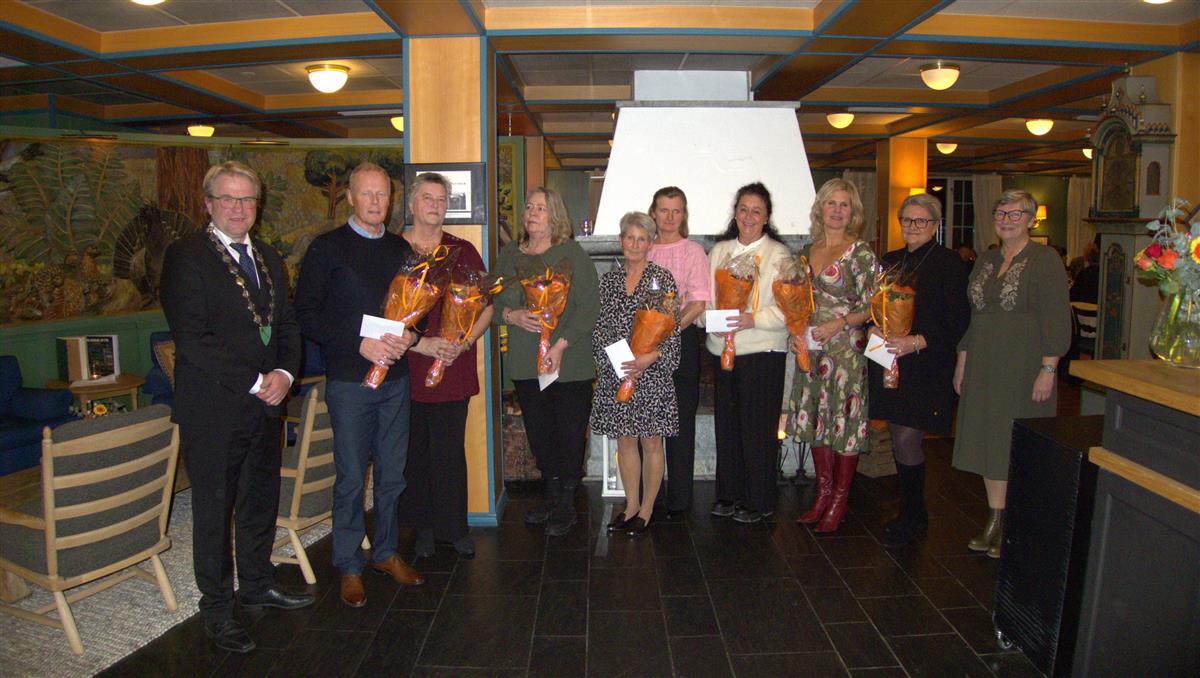 25 år: Jo Kristian Bartnes, Anita Skjeggestad Nord, Kristin Anita Johnsen, Kathrine Tøfte Ånsløkken, Solveig Regina Rønningen, Berit Beitmyren, Lill Magnus, Berit Marie Stensrud sammen med ordfører Ole Tvete Muriteigen og kommunedirektør Anne Holsbrekken.